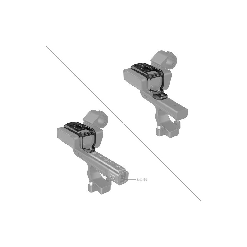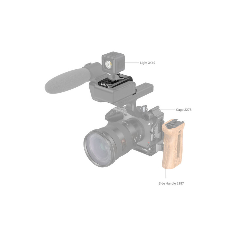 Mounting is done via the included 3/8"-16 thread adapter, which allows direct attachment to the SmallRig Top Handle Extension for FX3/FX30. This creates a stable base for mounting an additional handle, external monitor, microphone, or lighting.