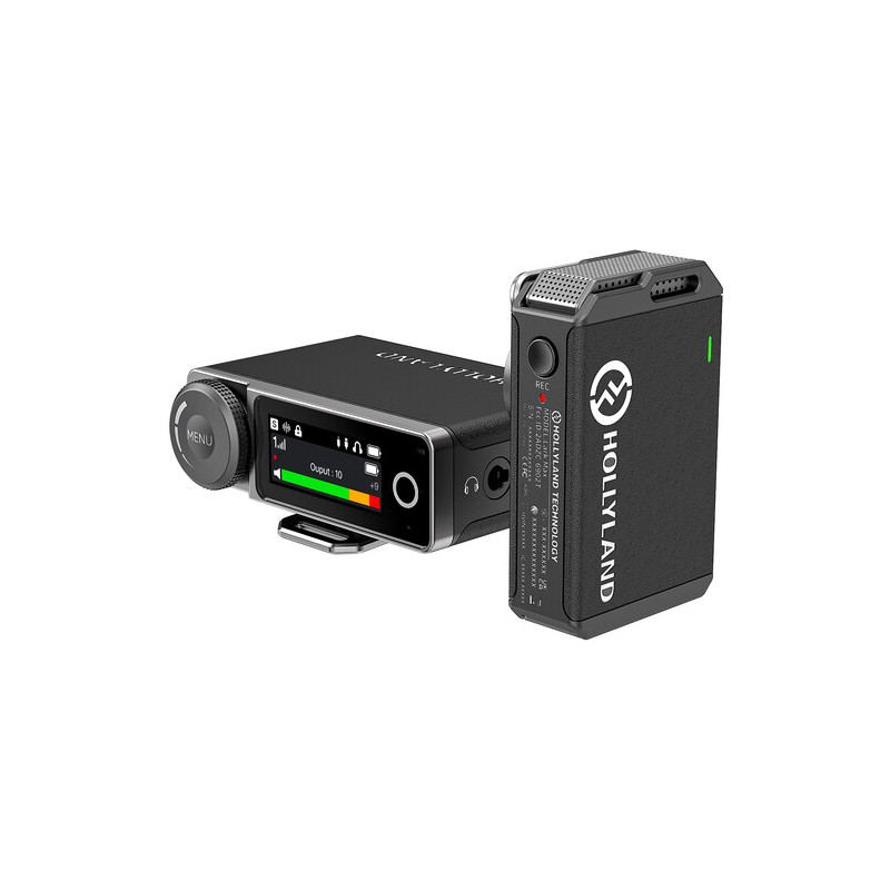 The Hollyland LARK MAX Duo receiver offers a 3.5 TRS output for easy connection to cameras and camcorders, as well as a USB-C port for connection to Android and iOS devices. It is equipped with a 1" color touch display that provides access to transmitter settings and provides real-time monitoring of various parameters. A convenient selector wheel is also available for various settings.