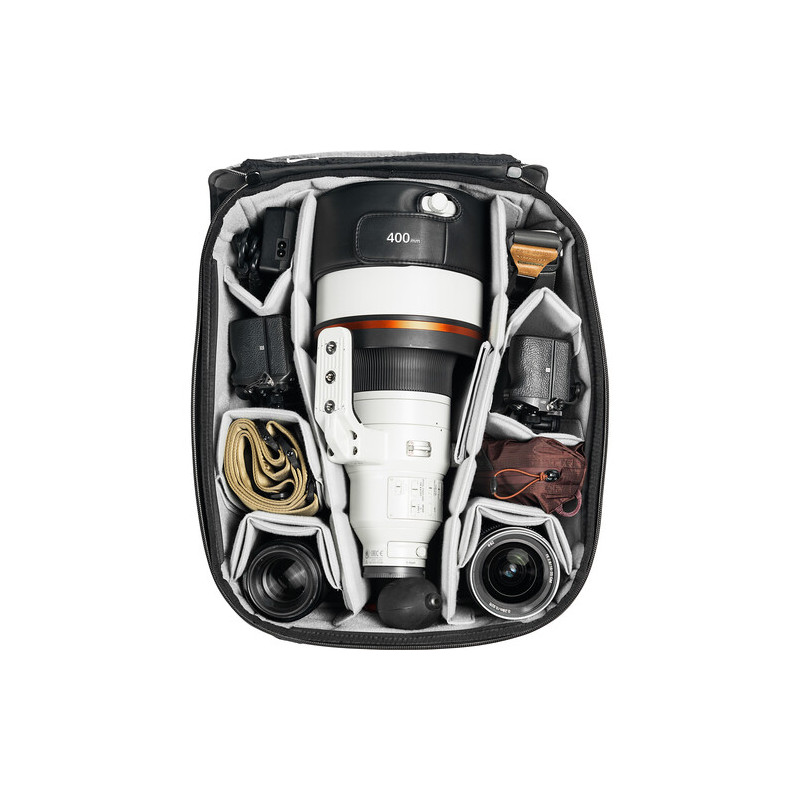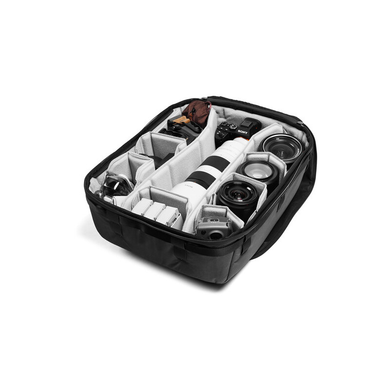 The Peak Design Travel Camera Cube V2 X-Large is part of a system of removable compartments that allows for easy and secure organization of the contents of a Peak Design Roller suitcase.
