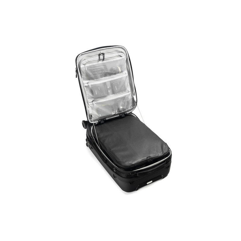 The compartment attaches to the suitcase using a C-Clip - a clip that fixes it and prevents it from moving inside the backpack. In addition, the compartment can also be carried as a stand-alone bag with an additional strap (sold separately).