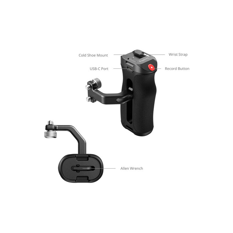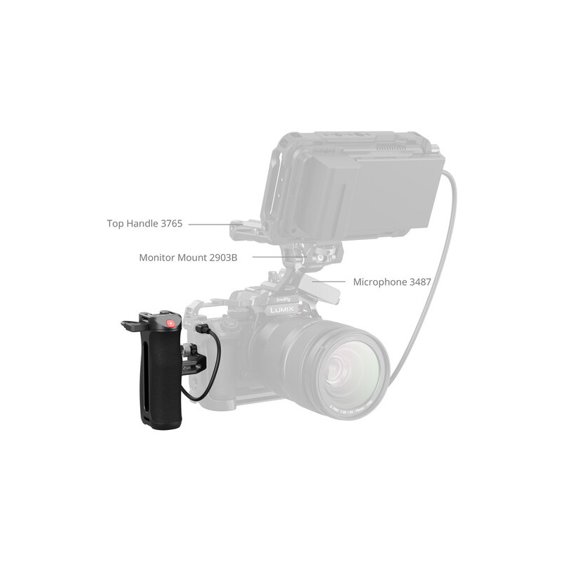 SmallRig 4928 Side Handle with REC Trigger is a side handle designed to provide maximum stability and control when shooting handheld with cage-mounted cameras. The 4928 Side Handle with REC Trigger features a built-in recording start and stop button, allowing for quick control of the camera without touching it, reducing the risk of vibration. The ergonomic design and high-quality materials ensure comfort during extended use, and the included cables ensure compatibility with leading camera models from Sony, Canon, Panasonic, and FUJIFILM.