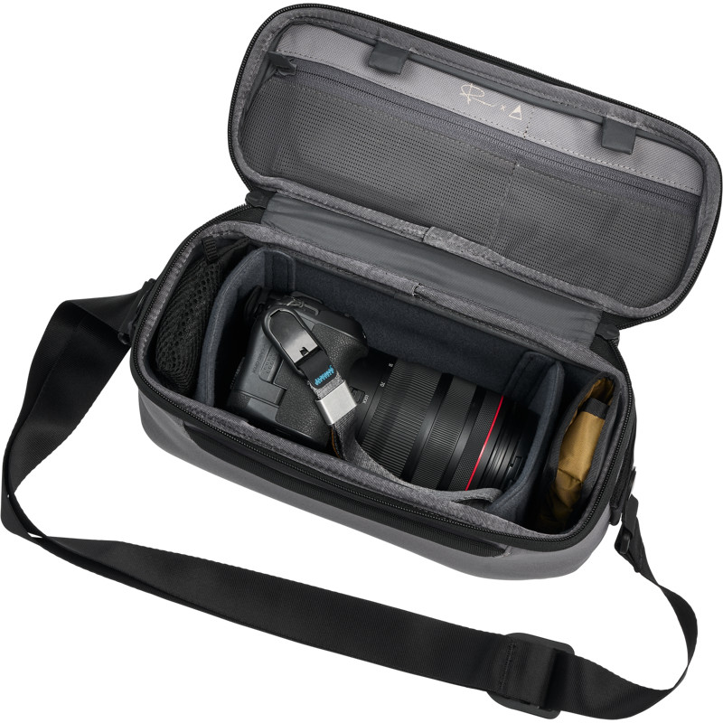 The Gomatic McKinnon Luma Camera Sling 9L bag is a compact sling that can be worn over the shoulder or on the back. Despite its small size, it can hold an impressive amount of equipment.