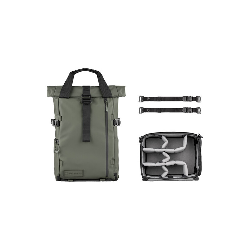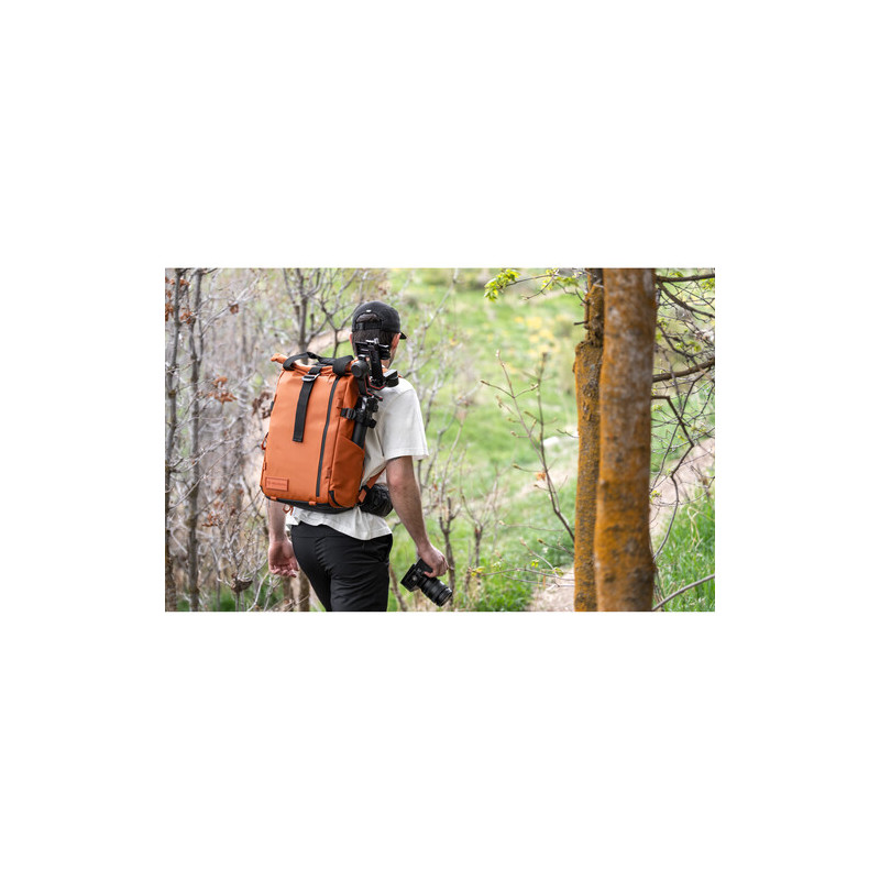 WANDRD PRVKE 21L Photo Bundle V4 is a high-quality multifunctional backpack for photo and video equipment and personal belongings with an innovative design. It features a 21-liter internal space and a roll-top that provides an additional 5 liters of space.