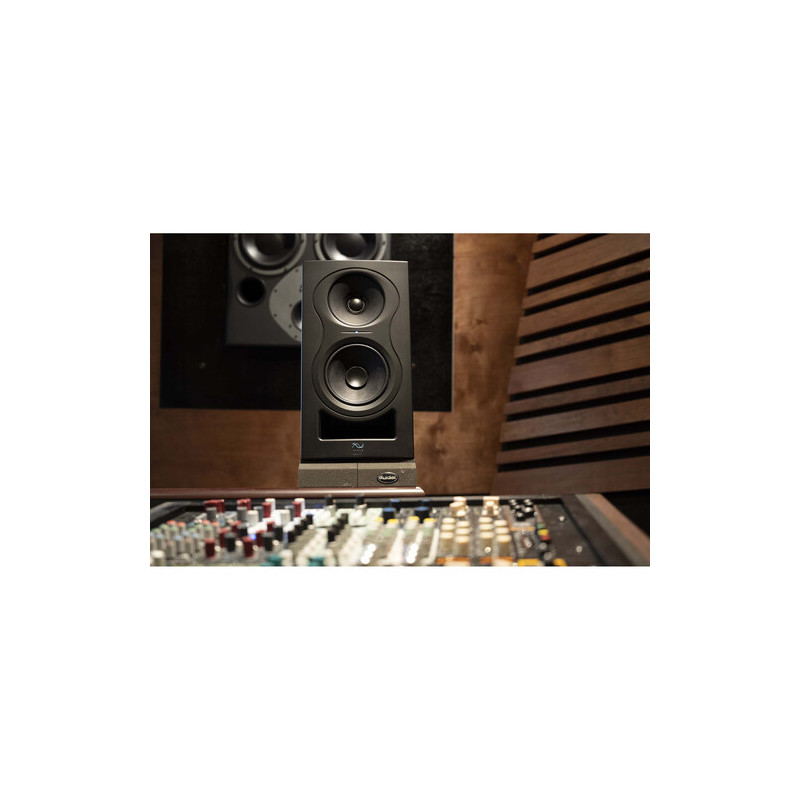 The IN-5 features a 3-way design featuring a 5-inch woofer, a 4-inch midrange driver, and a 1-inch fabric dome tweeter, all arranged on a single coaxial axis. This design provides optimal phase coherence and eliminates the off-axis lobing issues that often occur with standard monitors. The coaxial configuration allows the user to hear the music exactly as it was recorded, without distortion or inconsistencies between frequency ranges.