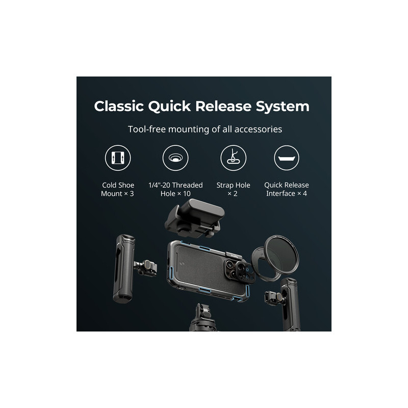 SmallRig 5010 is designed to be compatible with mobile cages, allowing integration with frames, stabilizers, and other accessories for professional mobile filming. This makes the adapter part of more complex configurations for high-end video and photography.