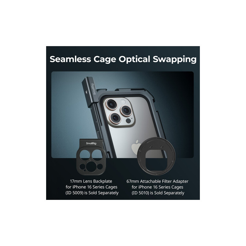SmallRig 5010 is made of lightweight and durable aluminum, providing stability when mounted on the iPhone 16. The adapter is easy to attach and remove, allowing for quick use of filters or switching to a standard shot.