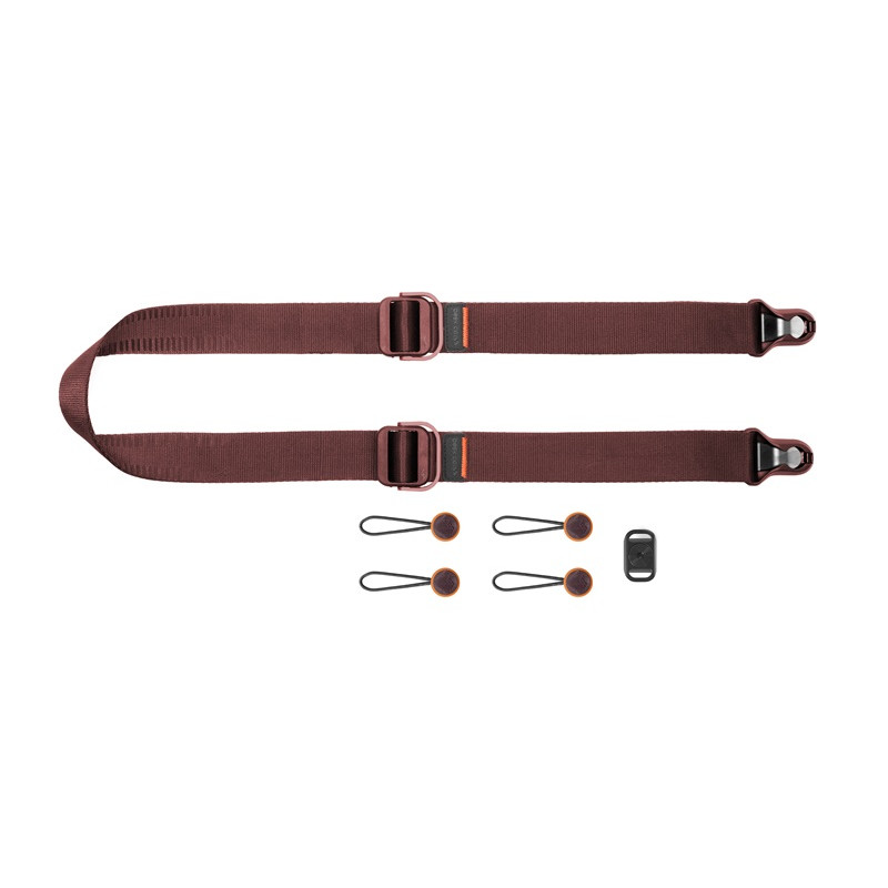 The Peak Design Strap Slide Lite is the world's most versatile camera strap. It uses strong, interchangeable anchor-style connectors that attach to camera holes or the included mounting plate, offers a load capacity of 90 kg, and is compatible with all cameras and binoculars. The Strap Slide adjusts from 99 to 145 cm in length using two-sided sliding mechanisms and can be worn as a shoulder strap, neck strap, or sling.