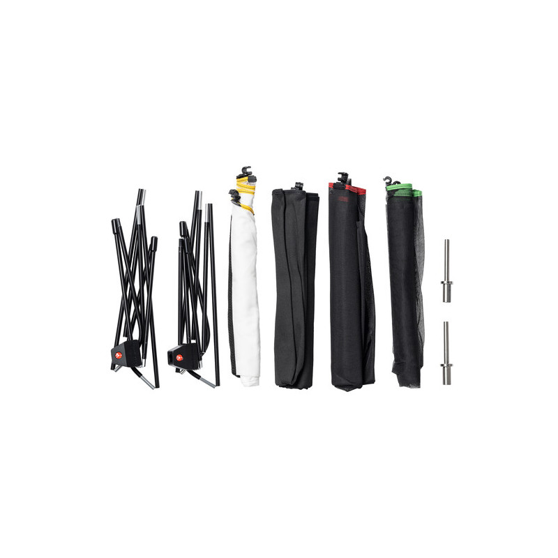 The Manfrotto LL LR191 Rapid Flag Kit (45 × 60 cm) is a high-quality and versatile light control kit featuring a foldable aluminum frame and four interchangeable flags. Designed for quickly and reliably shaping, softening or blocking light for photography and videography.
