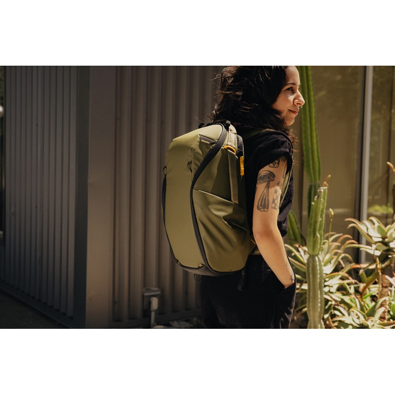 Peak Design's Everyday Backpack Zip is made from 100% recycled materials and features a durable, weather-resistant nylon construction and a waterproof bottom panel for added security.