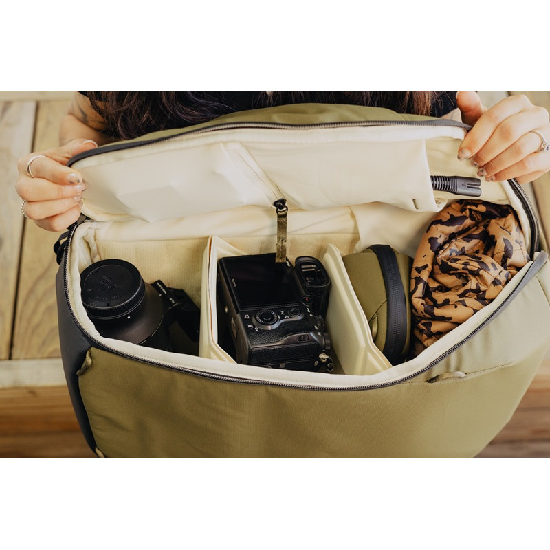 The Peak Design Everyday Backpack Zip 20L is a lightweight urban backpack that can serve photographers and visual artists, as well as anyone who can benefit from its discreet design. The backpack can accommodate any of the following combinations: mirrorless camera with lens + 4-5 additional lenses and accessories; DJI Mavic drone + controller, batteries, charger and other accessories; small DSLR with lens + 3-4 additional lenses and accessories; full-frame DSLR + 70-200 Pro lens + additional lens and accessories.