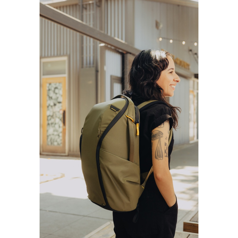 Peak Design's Everyday Backpack Zip is made from 100% recycled materials and features a durable, weather-resistant nylon construction and a waterproof bottom panel for added security.