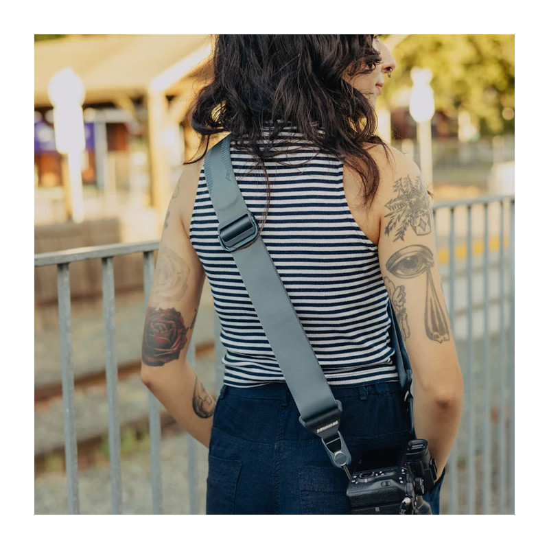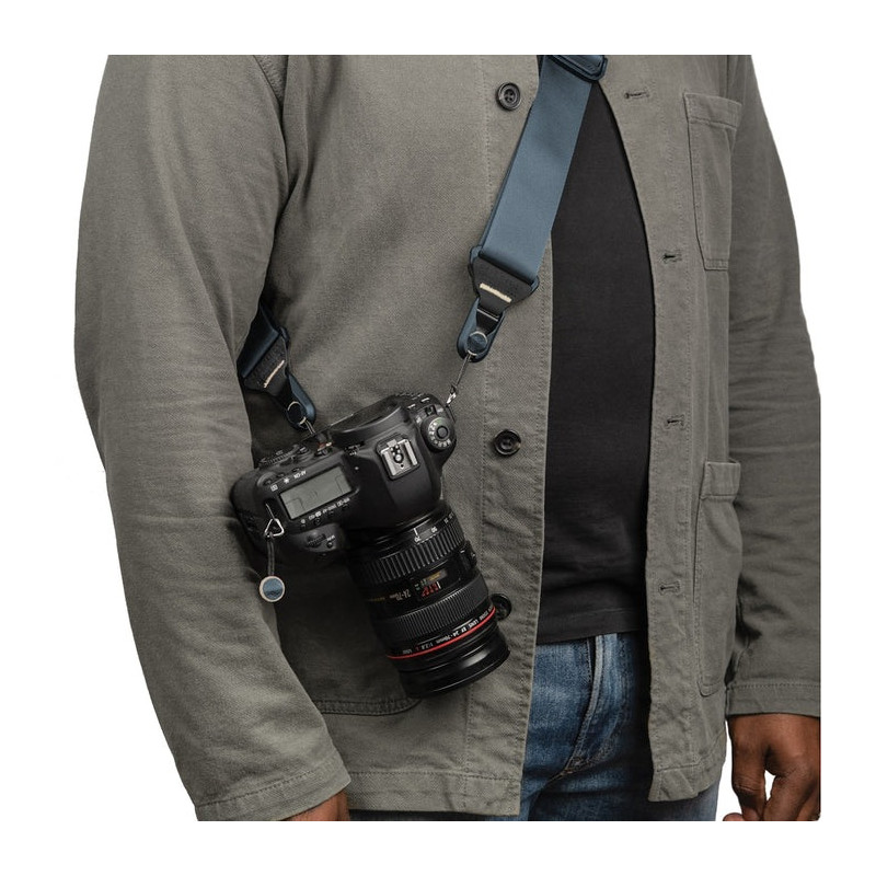 The Peak Design Everyday Sling 6L is a compact, versatile bag that can be worn over the shoulder or across the waist. When worn over the shoulder, the bag's padded strap can be adjusted for the right or left shoulder.