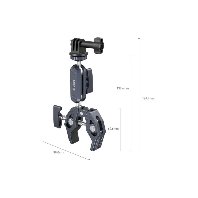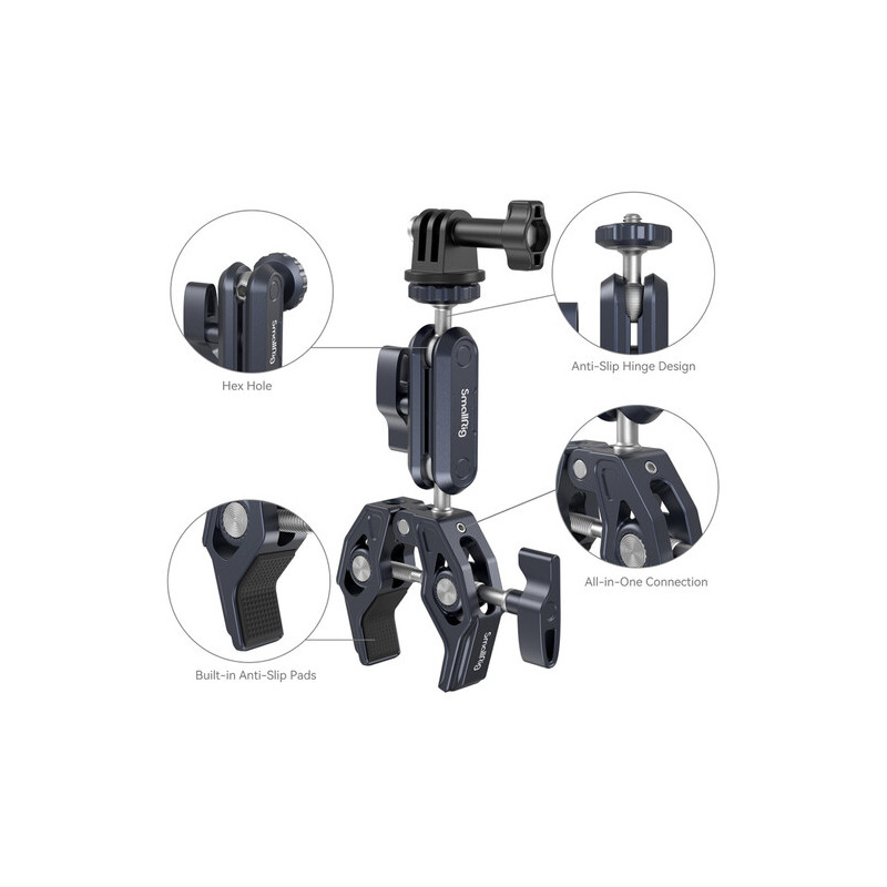 SmallRig 3757 Crab-Shaped Clamp with Ballhead Magic Arm is a professional mounting accessory designed for quickly and securely attaching cameras, monitors, lights or microphones to various surfaces. Made of aluminum and stainless steel, it combines strength and compactness, allowing for easy positioning and safe operation in dynamic shooting conditions.