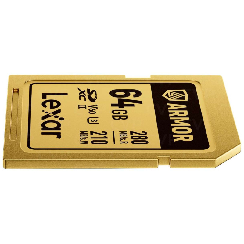 Designed for your mirrorless cameras, the Lexar Professional Armor Gold SDXC 64GB UHS-II memory card delivers stunning read and write speeds of up to 280MB/s and up to 205MB/s, respectively.