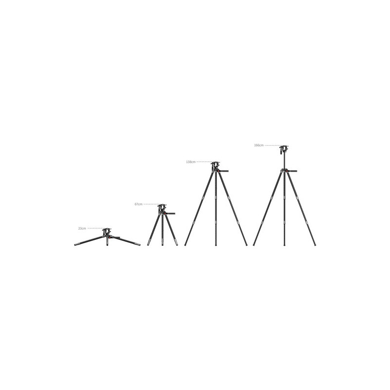 The maximum working height reaches 168 cm, the minimum is 25 cm, and the folded size is only 70.9 cm, which makes it easy to carry and store. Weighing 3.7 kg, the Tribex SE achieves the perfect balance between stability and mobility. Every detail is designed for intensive professional use, from the sturdy locking mechanisms to the rubber anti-vibration feet that provide reliable traction on various surfaces.