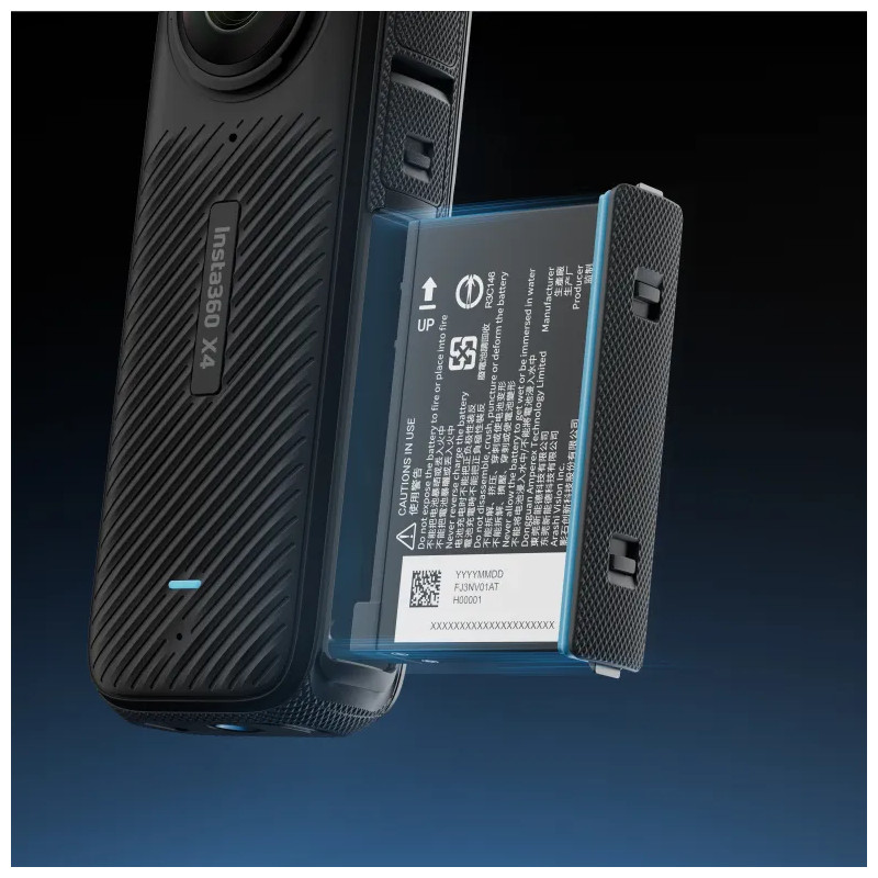 One of the main improvements in the model compared to the predecessor Insta360 X3, is the significantly extended battery life - it has 67% more capacity and provides up to 71 minutes of 8K30p and up to 135 5.7K30p recordings of 360° video.