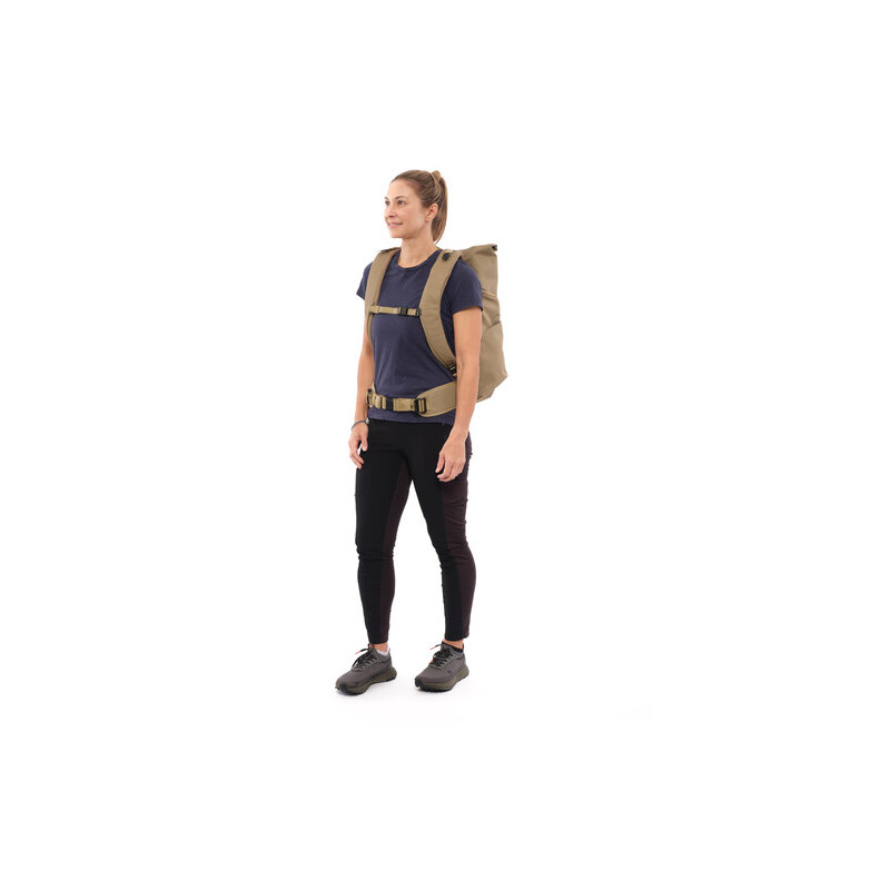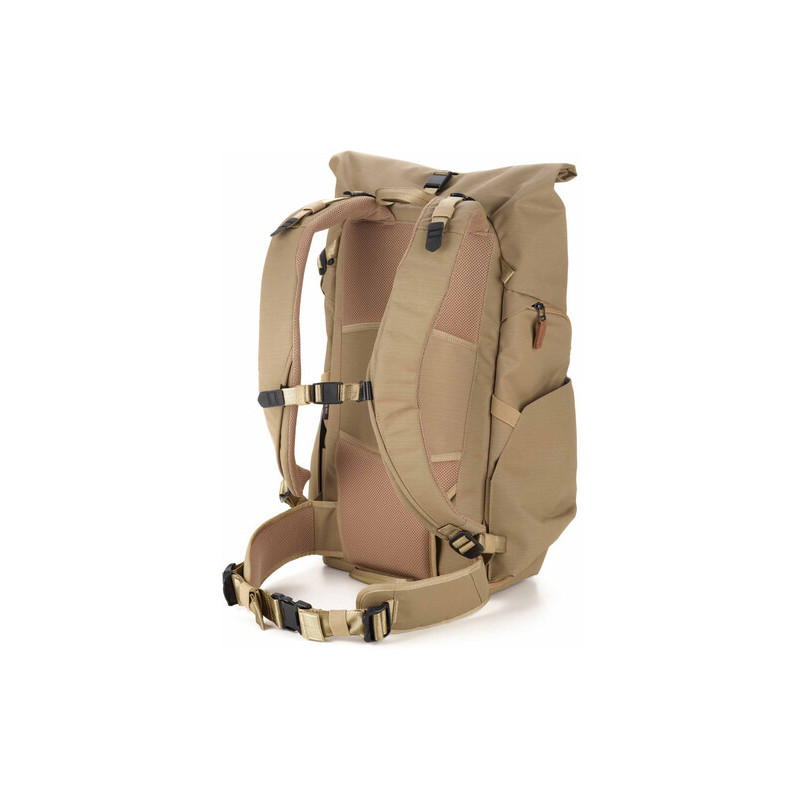 The backpack is made of durable water-resistant nylon that protects the contents from rain and dust, and the roll-top design provides additional volume when needed. The closure is carried out by a combination of zipper and roll-top, ensuring quick access and security. The interior includes padded adjustable dividers that allow you to customize the space according to your equipment.