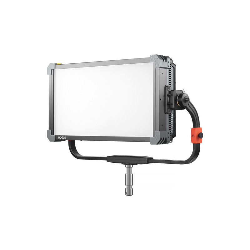 The panel's construction is stable and built for long-term use, including a built-in fan for efficient cooling during extended use. Installation is made easy with a 1-1/8" stud adapter with yoke grip, suitable for professional stands and lighting systems.