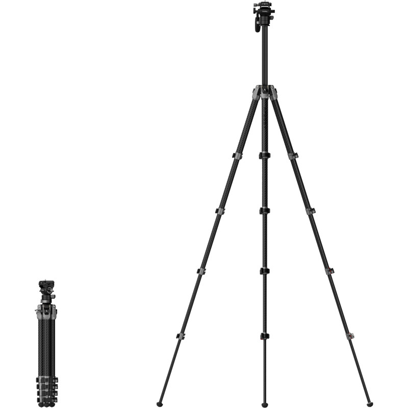 SmallRig 5477 AP255PRO is a lightweight and extremely stable video tripod designed for professional use with camcorders, mirrorless and compact cameras, as well as mobile solutions. Made of carbon fiber, it provides strength and stability, while being easy to carry and set up on set. The tripod offers smooth height adjustment, flexible camera positioning options, and secure fixation in various terrain conditions.