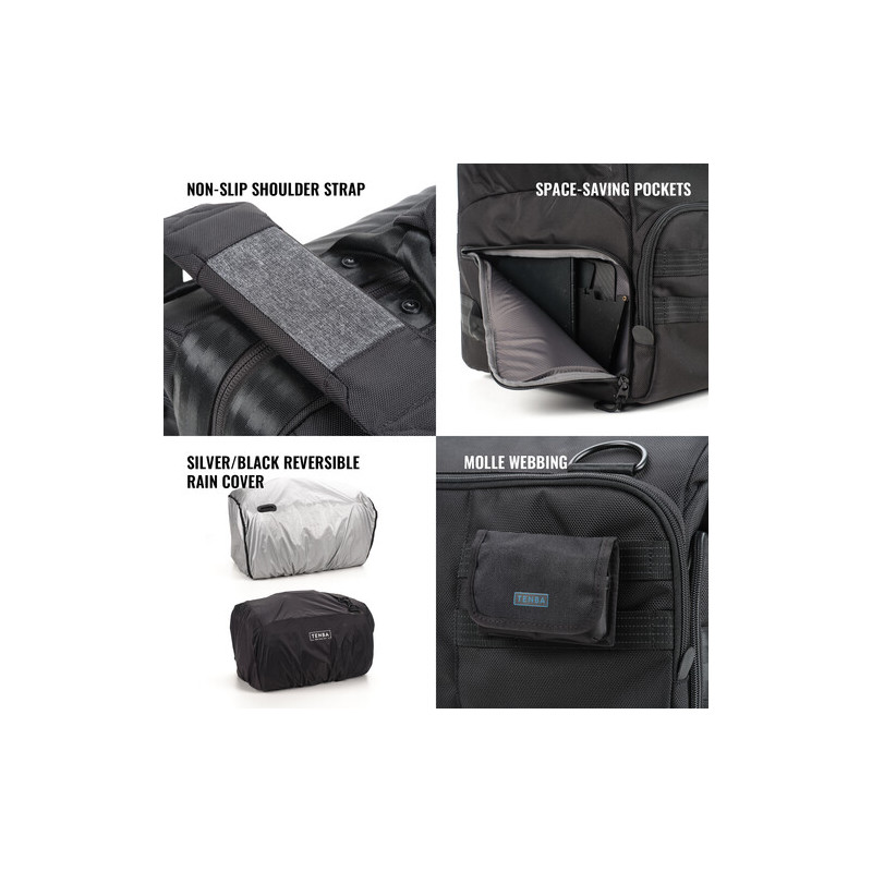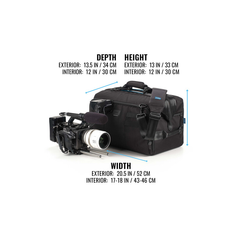 The Tenba Cineluxe V2 Shoulder Bag 21 Hightop is a high-quality and highly functional bag designed specifically for the needs of today's film and video professionals. It combines security, quick access and impressive durability in a compact and easy-to-carry design. With a volume of 42 liters and an interior space with the possibility of individual customization, the bag is compatible with a number of professional configurations, including cameras with attached accessories.