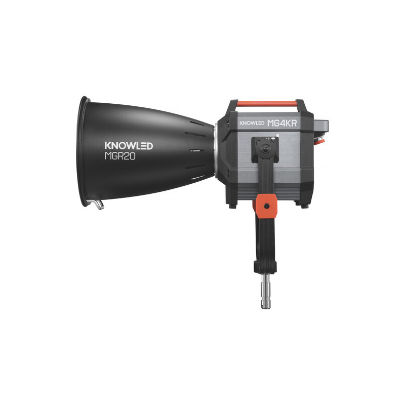 The KNOWLED MG4KR RGB Led Light is a powerful directional RDB LED light designed for professional video and photo projects where the requirements for brightness, color accuracy and reliability are maximum. The light offers RGB, Daylight, Tungsten modes with a range of 1800 K to 10,000 K, allowing smooth adjustment between warm and cold light for perfect adaptation to different scenes. With the included 20° reflector, the MG4KR reaches up to 2,025,900 Lux at 1 meter, providing an extremely directional and uniform light beam that copes successfully both in the studio and on outdoor locations.