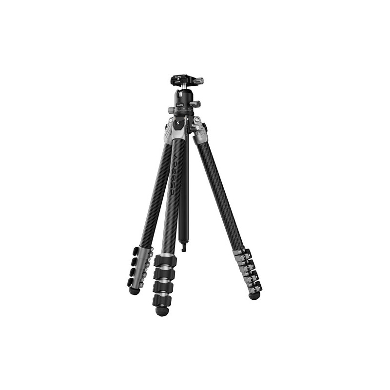 The legs are made of carbon fiber and are divided into 5 sections, which contributes to the compact size when folded. Flip-lock mechanisms provide quick and secure locking when unfolding, and the round center column allows for additional fine height adjustment. The tripod has 3 built-in 1/4"-20 threads for mounting accessories such as magic arms, LED lighting or microphones, without the need for additional adapters.