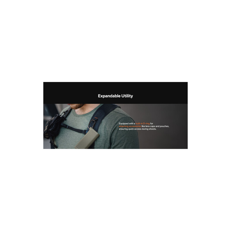 Additional practical details such as a removable chest strap for better stability, front expansion straps for additional equipment (binoculars, accessories), D-ring clip for small accessories and T-buckle system for smooth adjustment turn the PGYTECH Camera Shoulder Strap Master into a complete and professional solution for carrying equipment.