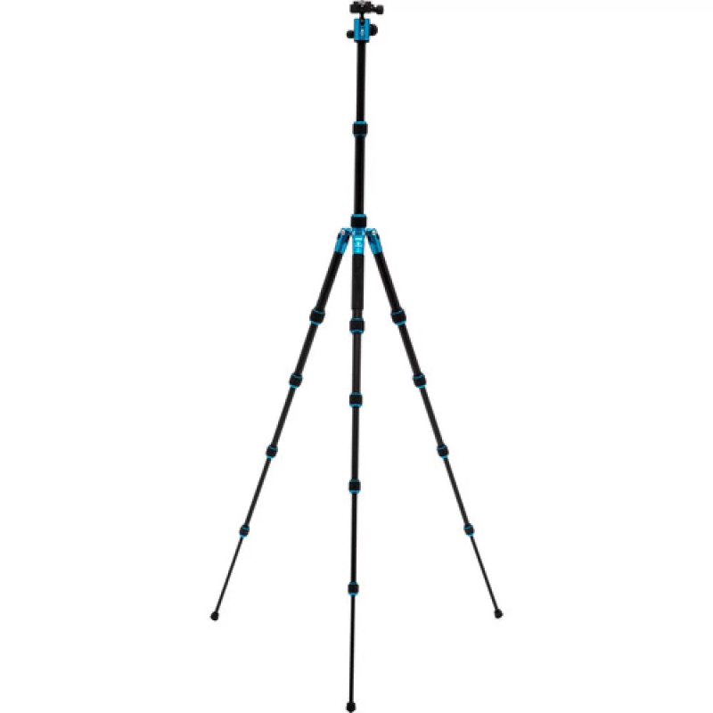 The aluminum construction provides a good balance between strength and light weight, with the entire system weighing just 1.13 kg but supporting a load of up to 6 kg. This makes it suitable for mirrorless cameras, DSLR bodies and lighter video setups. The tripod features five-section legs and a two-section center column, which allow for flexible height adjustment according to the shooting situation.