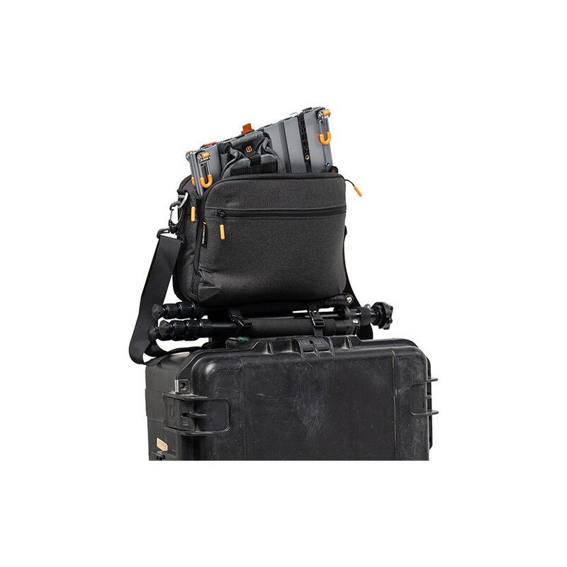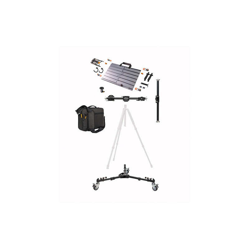 The kit is completed with a pull-out accessory or cup holder, Tech Strap bands and hooks that help organize cables, headphones and small accessories. The Baby Ball Head adapter allows for fine positioning of cameras or monitors, and the AeroTrac handle makes carrying the system easy and convenient.