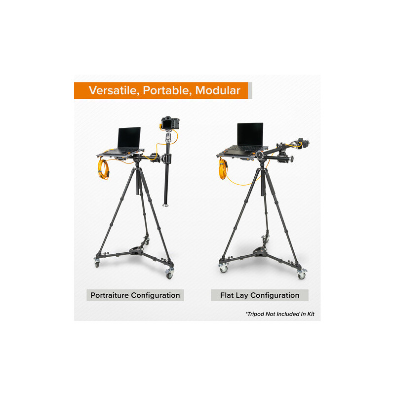 The All-In-One kit includes four workstation legs, allowing for stand-alone use without a tripod, as well as a Rock Solid roller tripod base for maximum mobility in a studio environment. The added two- and four-head crossbar systems expand the mounting options for multiple devices at once and create a tidy and efficient work area.