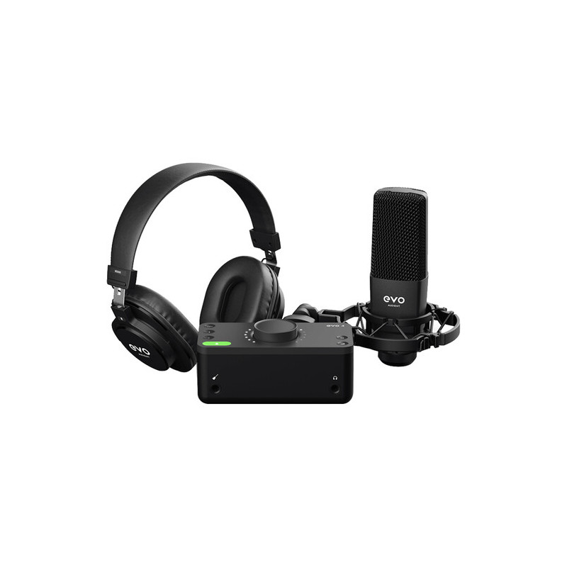 The Audient EVO 4 SRB Kit is a complete recording and monitoring solution designed for users who want to get started right away with a well-balanced and technically sound kit. The kit combines the EVO 4 USB audio interface with the EVO SR1 condenser microphone and the EVO SR2000 monitor headphones.