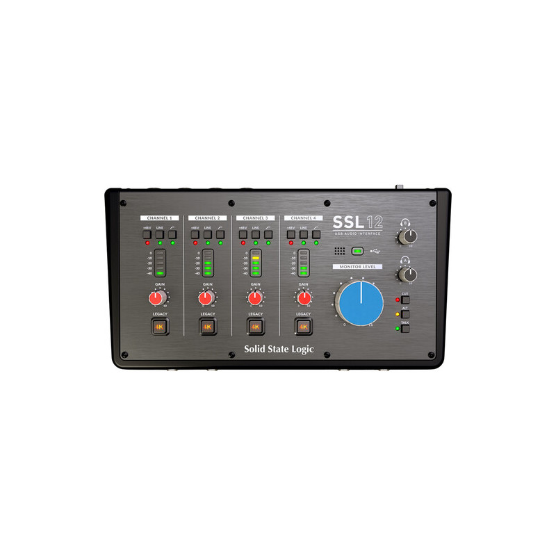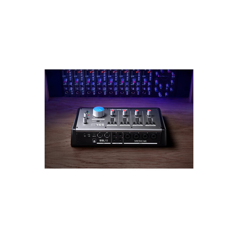 The Solid State Logic SSL 12 is a professional USB audio interface designed as a centerpiece for modern home and project studios that demand maximum control, high resolution, and SSL audio quality. It combines an extensive input/output configuration with a precision analog section and future-proof digital expansion.
