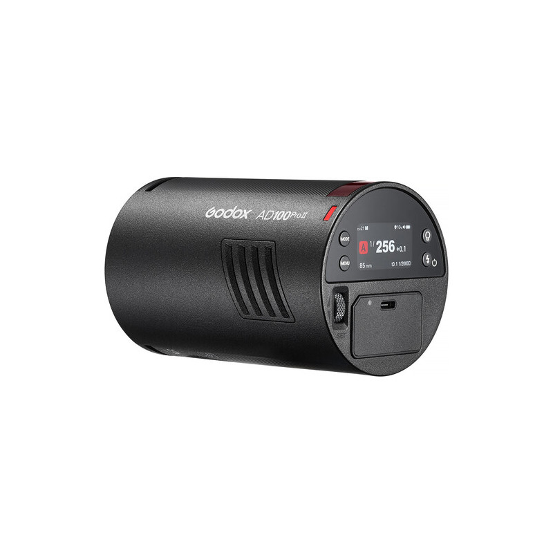 The Godox AD100Pro II is a pocket-sized, portable 100Ws flash designed as a compact yet highly controllable solution for studio photography or on-location work. The model builds on the previous generation with a better screen, more efficient modeling lighting, and expanded wireless control capabilities, while remaining extremely portable at approximately 564g with battery.