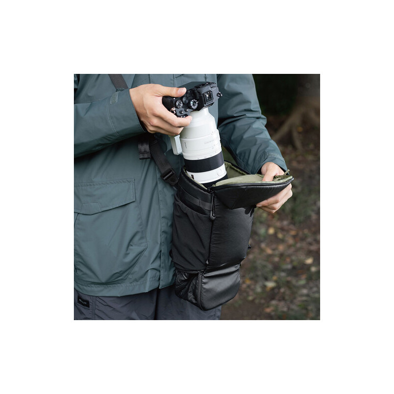 The PGYTECH Camera Top Loader is a compact holster -style bag designed for quick and direct access to your camera while shooting. It is designed for a DSLR or mirrorless body with a lens up to 70–200 mm attached, and the expandable interior allows for convenient storage of longer lenses without compromising protection. Access is via a top zipper, making it suitable for dynamic situations, street photography, and travel.